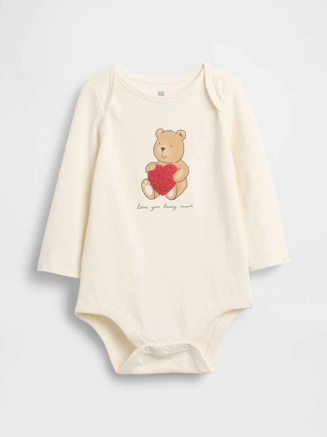 • Má okrúhly výstrih s prekladanými ramenami, ktoré uľahčujú obliekanie cez hlavu, a zapínanie na patentky v rozkroku pre pohodlné prebaľovanie.