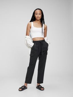 - Dámske cargo nohavice z mäkkej tkanej bavlny s opaskom spájajú praktickosť, štýl a udržateľnú výrobu v jednom univerzálnom kúsku.