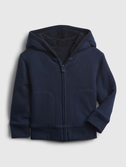 - Detská mikina v modrej farbe a so zapínaním na zips.