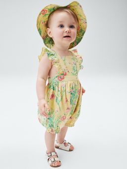 - Kvetovaný overal v žiarivých farbách s volánmi