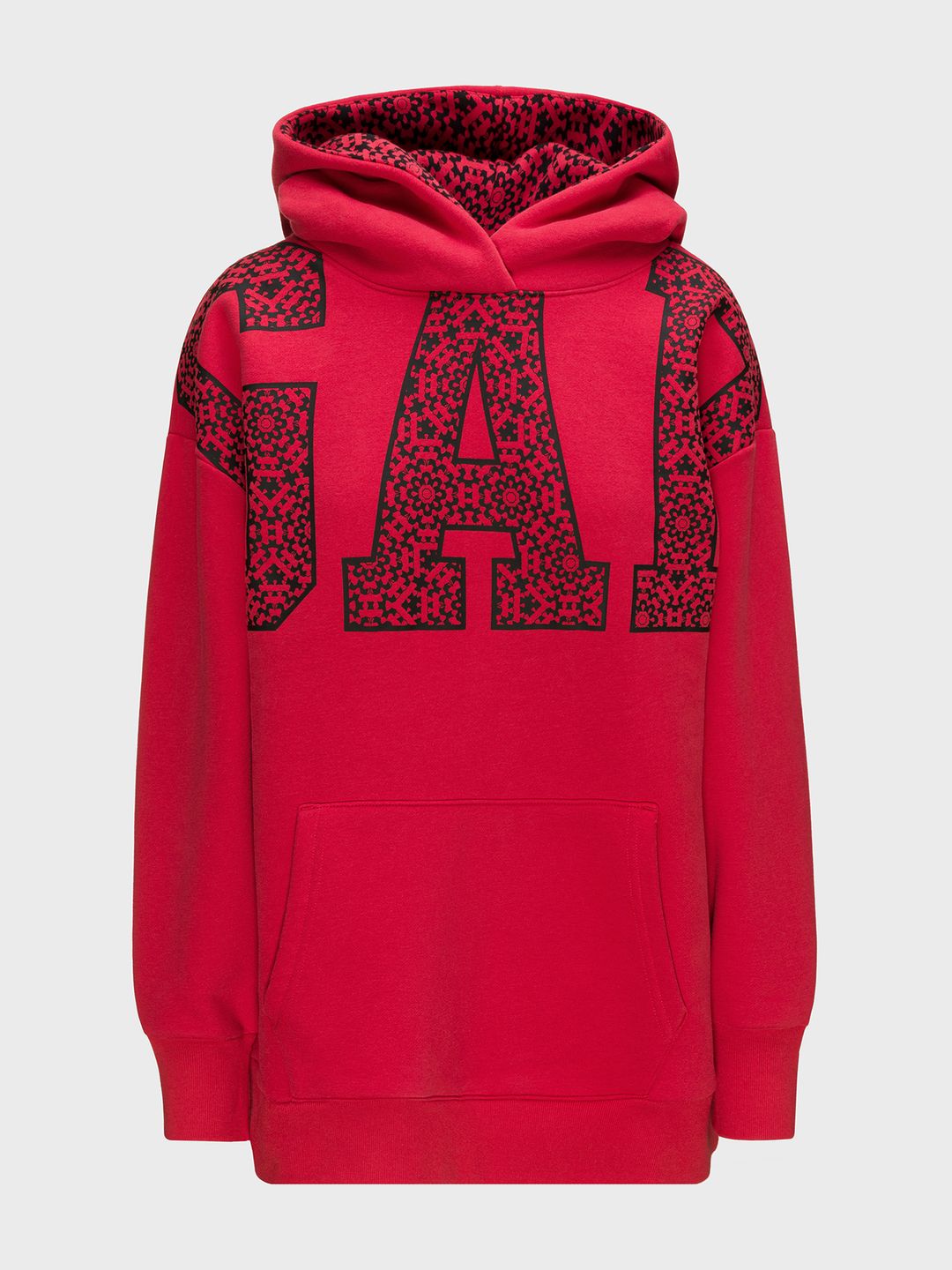- Dámska mikina GAP v predĺženej dĺžke a červenej farbe.