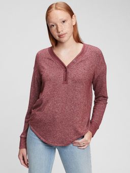 Dámske tričko GAP s dlhým rukávom. Cez ramená spadnuté rukávy s nápletmi. Zaujímavo riešený výstrih do V. Zapínanie na tri gombíky. Rovný strih zakončený do guľata.
