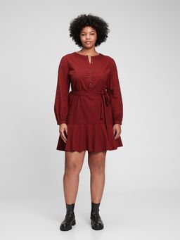 - Dámske bavlnené šaty s dlhým rukávom a našitým volánom