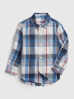 - Bavlnená košeľa s dlhým rukávom, golierom a zapínaním na gombíky.