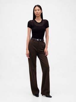 • Rovný strih Classic sedí v páse, je voľnejší cez boky a stehná a prechádza do širokej nohavice, ktorá dodáva modernú siluetu.