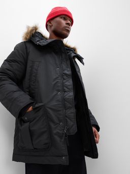 - Hrejivá sherpa podšívka a odnímateľný lem z umelej kožušiny na kapucni dodávajú extra komfort a ochranu.