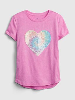 - Dievčenské ružové tričko GAP s veľkou aplikáciou z flitrov v tvare srdca na prednom dieli
