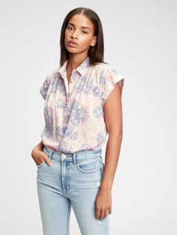 - Spadnuté rukávy, golier, zapínanie na gombíky, kvetinový motív.