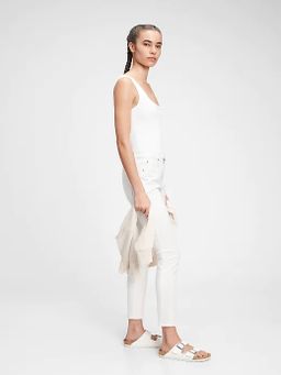 Dámske biele džínsy GAP. Bavlnený materiál s elastanom a lycrou. Klasické zapínanie, vrecká, pútka na opasok. Skinny strih.