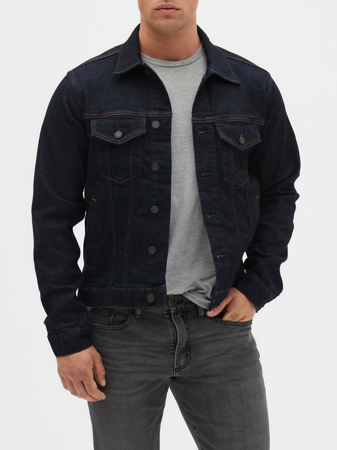 - Pánska džínsová bunda klasického strihu, zapínanie na gombíky