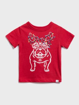 - Jednofarebné tričko s veselou vianočnou potlačou a krátkym rukávom.