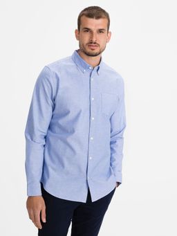 - Jednofarebná klasická košeľa s golierom, dlhým rukávom a vreckom na hrudi